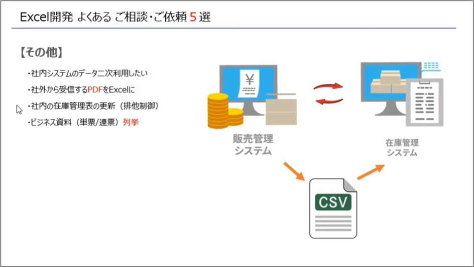 今回の動画では「エクセル開発よくあるご相談ご依頼5選」ということでお話をしていきます。